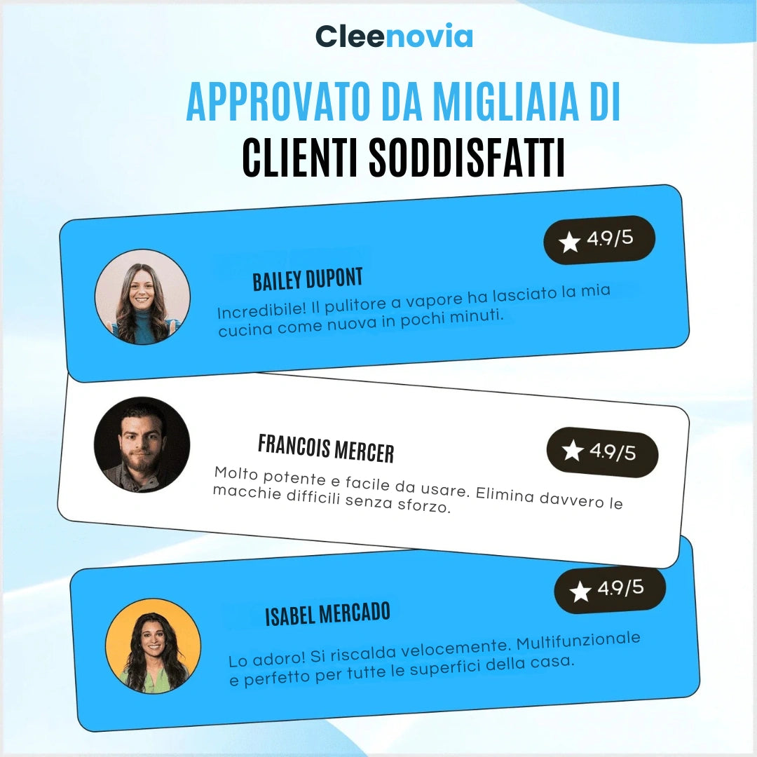 Cleenovia™ V12-Pro è coperto da una garanzia “soddisfatti o rimborsati” di 90 giorni.