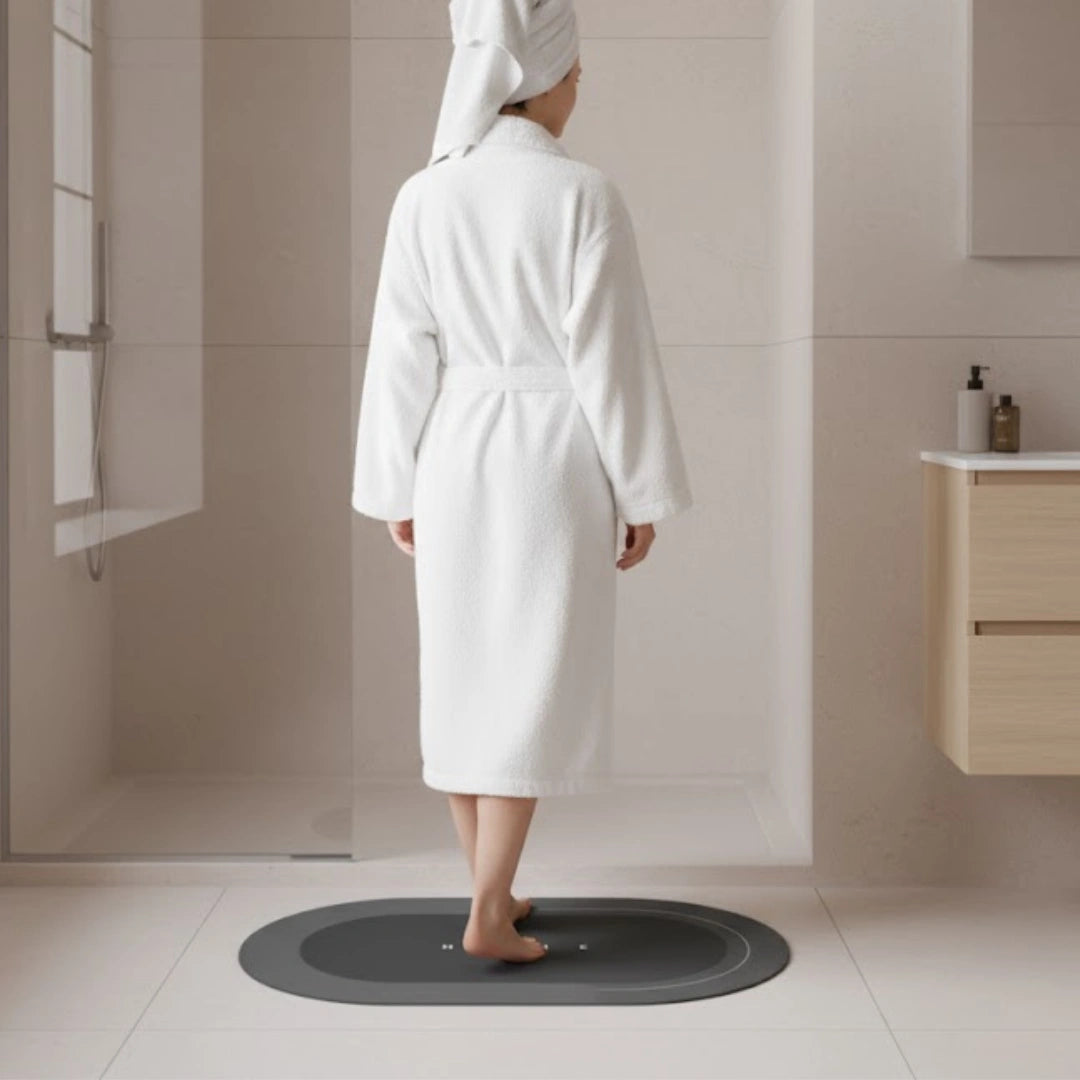 Con CleenPad™, vivi la tranquillità di uscire dalla doccia senza pensieri. Il tuo bagno resta impeccabile e asciutto, garantendoti igiene perfetta e comfort immediato.