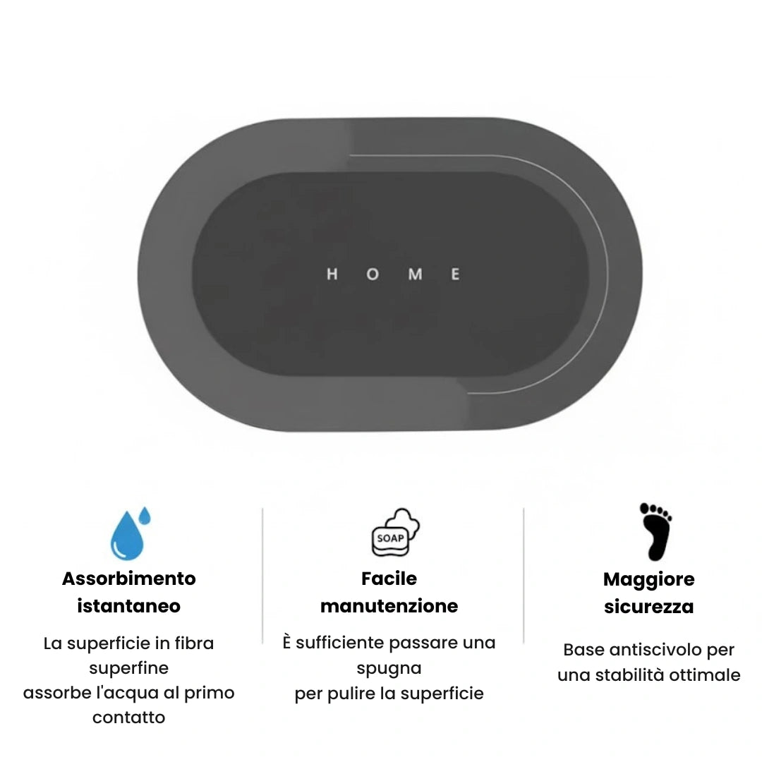 Utilizzo ideale: Perfetto all'uscita dalla doccia o dalla vasca per un'asciugatura immediata dei piedi. Ideale anche in cucina o davanti al lavandino grazie alla sua superficie antiscivolo.