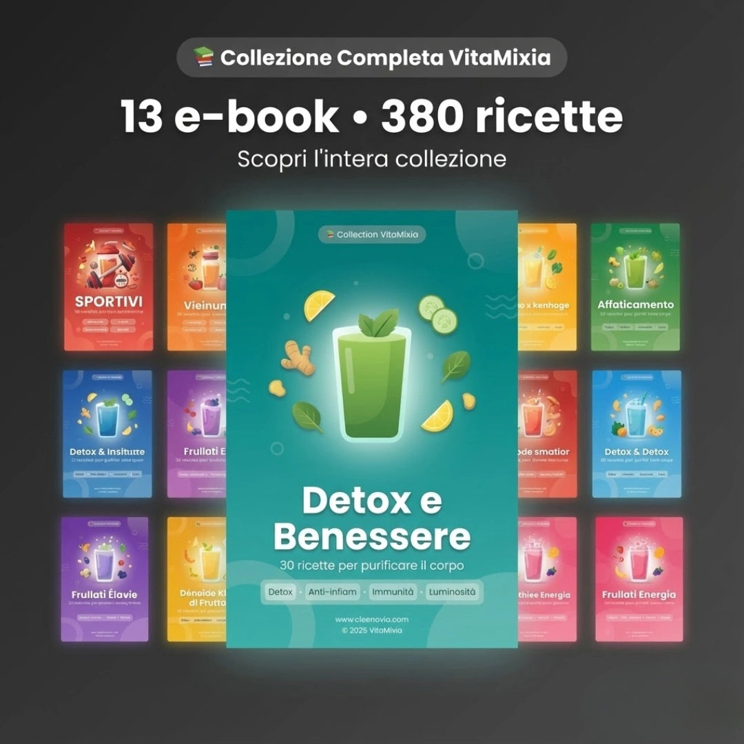 Questo volume è un tassello fondamentale dell'Ecosistema VitaMixia. Abbiamo sviluppato una collezione esclusiva di 13 E-book tematici (per un totale di oltre 380 ricette!) progettati per accompagnarti in ogni fase della tua vita.